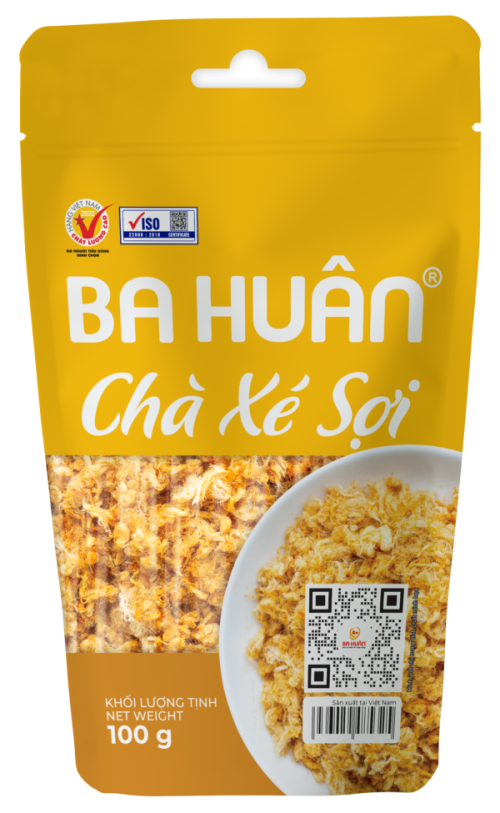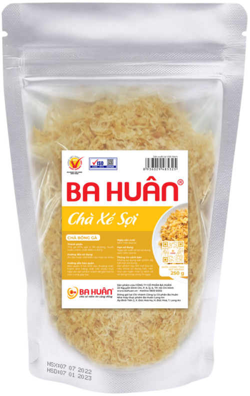 Chà xé sợi được chế biến từ nguồn thịt gà chất lượng cao, chọn lựa kỹ càng từ trang trại Ba Huân, áp dụng công nghệ hiện đại và đạt tiêu chuẩn an toàn vệ sinh thực phẩm.