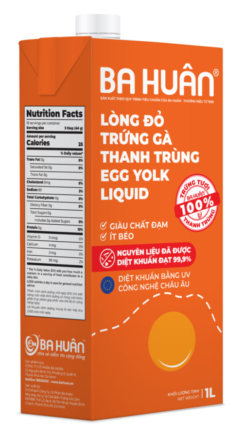 Lòng đỏ trứng gà thanh trùng Ba Huân được chế biến từ trứng gà tươi, trải qua quy trình thanh trùng hiện đại, giảm số lượng mầm bệnh, vi sinh vật gây hại như vi khuẩn, virus, nấm men, nấm mốc.