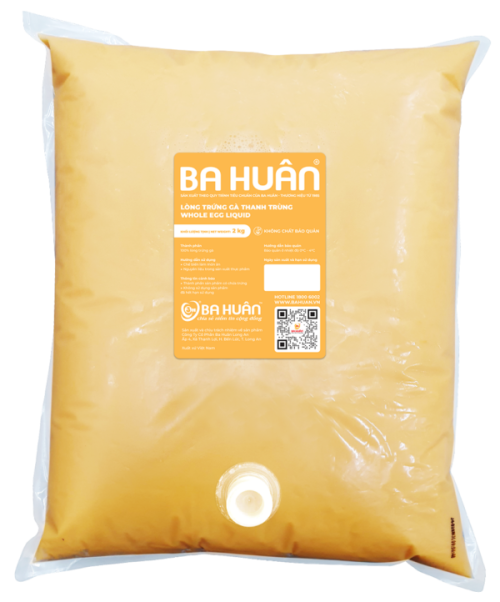 Lòng trứng gà thanh trùng Ba Huân được chế biến từ trứng gà tươi, trải qua quy trình thanh trùng hiện đại, giảm số lượng mầm bệnh, vi sinh vật gây hại như vi khuẩn, virus, nấm men, nấm mốc.