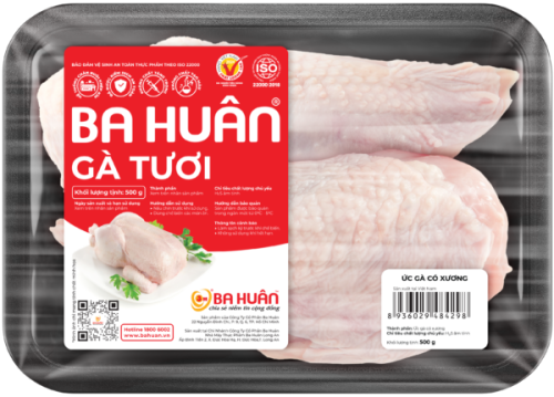 Ức gà có xương Ba Huân được tách ra từ 2 bên ức tới ngực gà và giữ lại phần khung xương và 1 ít lớp da bên ngoài. Sản phẩm được sản xuất và đóng gói đạt tiêu chuẩn HACCP-ISO 22000: công nghệ bảo quản thịt mát hiện đại, đảm bảo chất lượng thịt tươi ngon, vẹn nguyên đến tay khách hàng.
