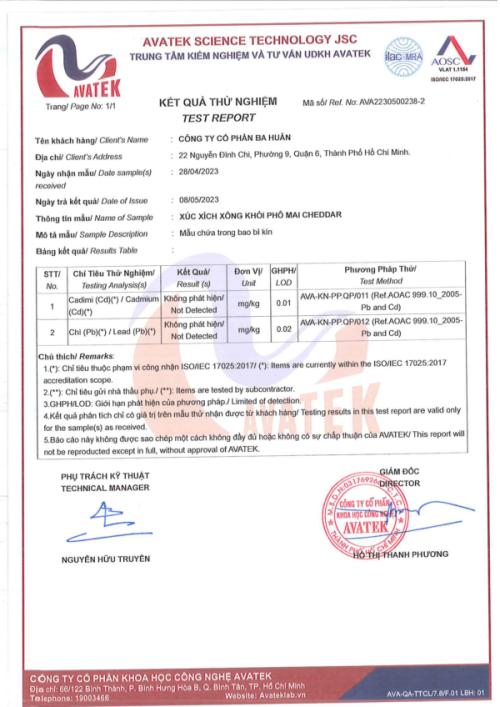 - Thành phần: Thịt gà, nước, mỡ heo, phô mai cheddar, hỗn hợp gia vị (muối, đường, tiêu), vỏ bọc xúc xích collagen, đạm đậu nành, bột tỏi